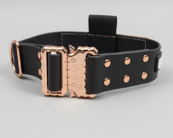 Meet the Atlas Adjustable Collar – Black & Gold Edition, a bold combination of strength and style. Built from premium black BioThane®, it’s waterproof, odor-proof, and made to perform through every adventure.