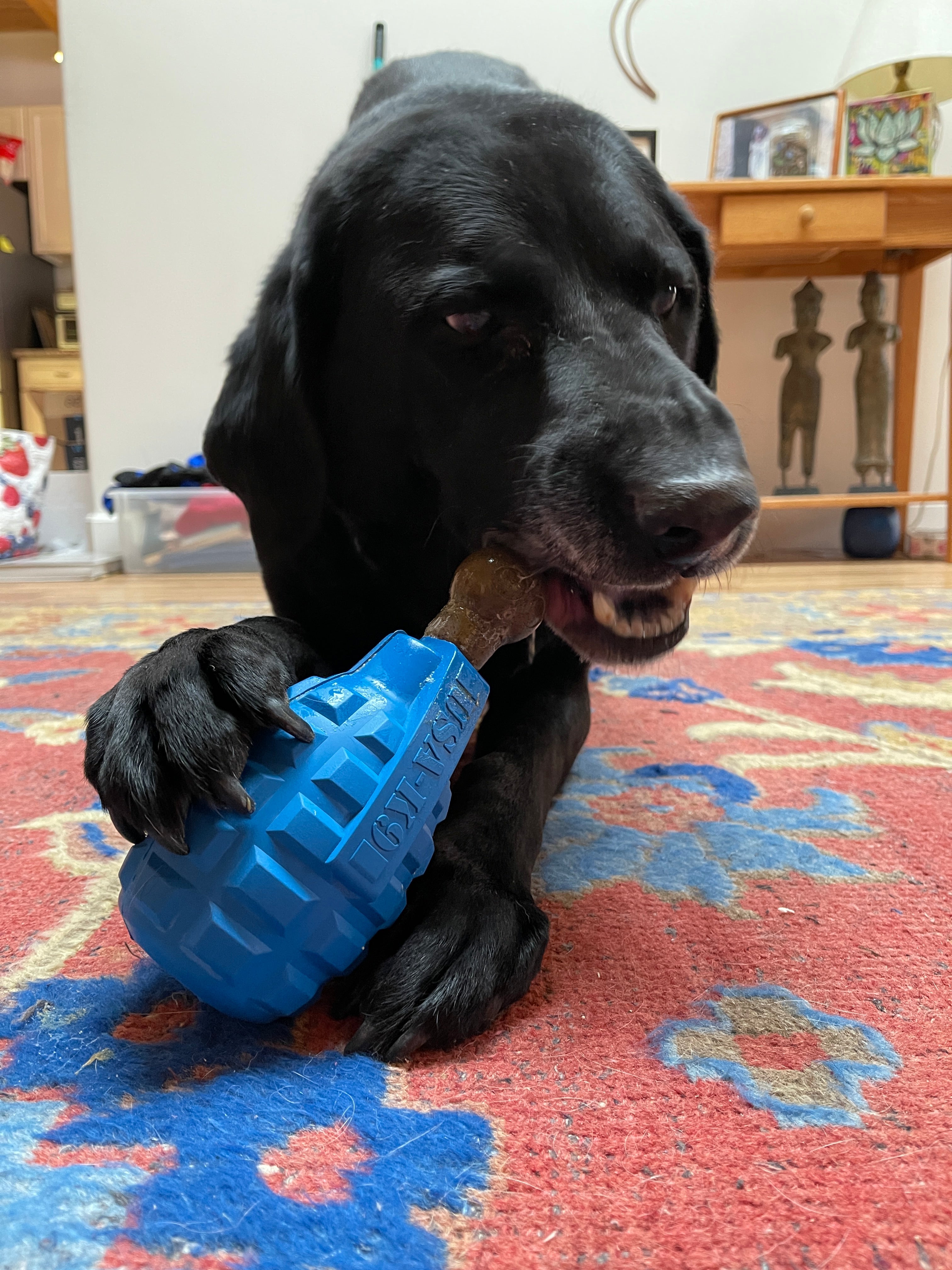 USE: Insert the Unstoppables Chewer into the small hole at the to of your SodaPup dog toy. The stem of the toy has two "stops". Push the stem past the second stop for a secure fit. Give to your dog and let the chewing begin!