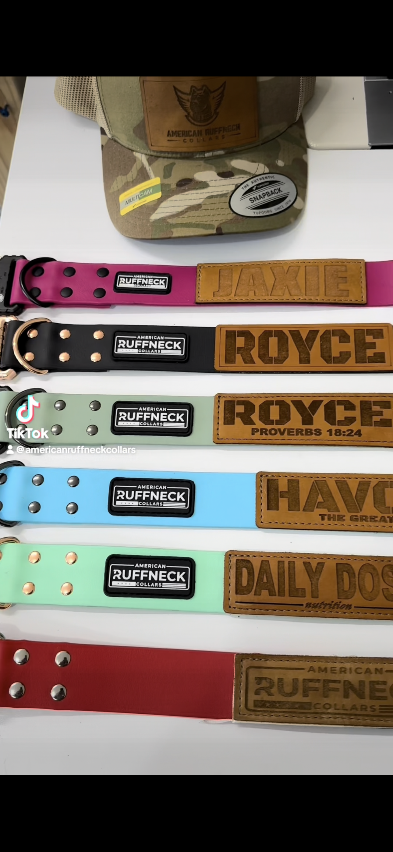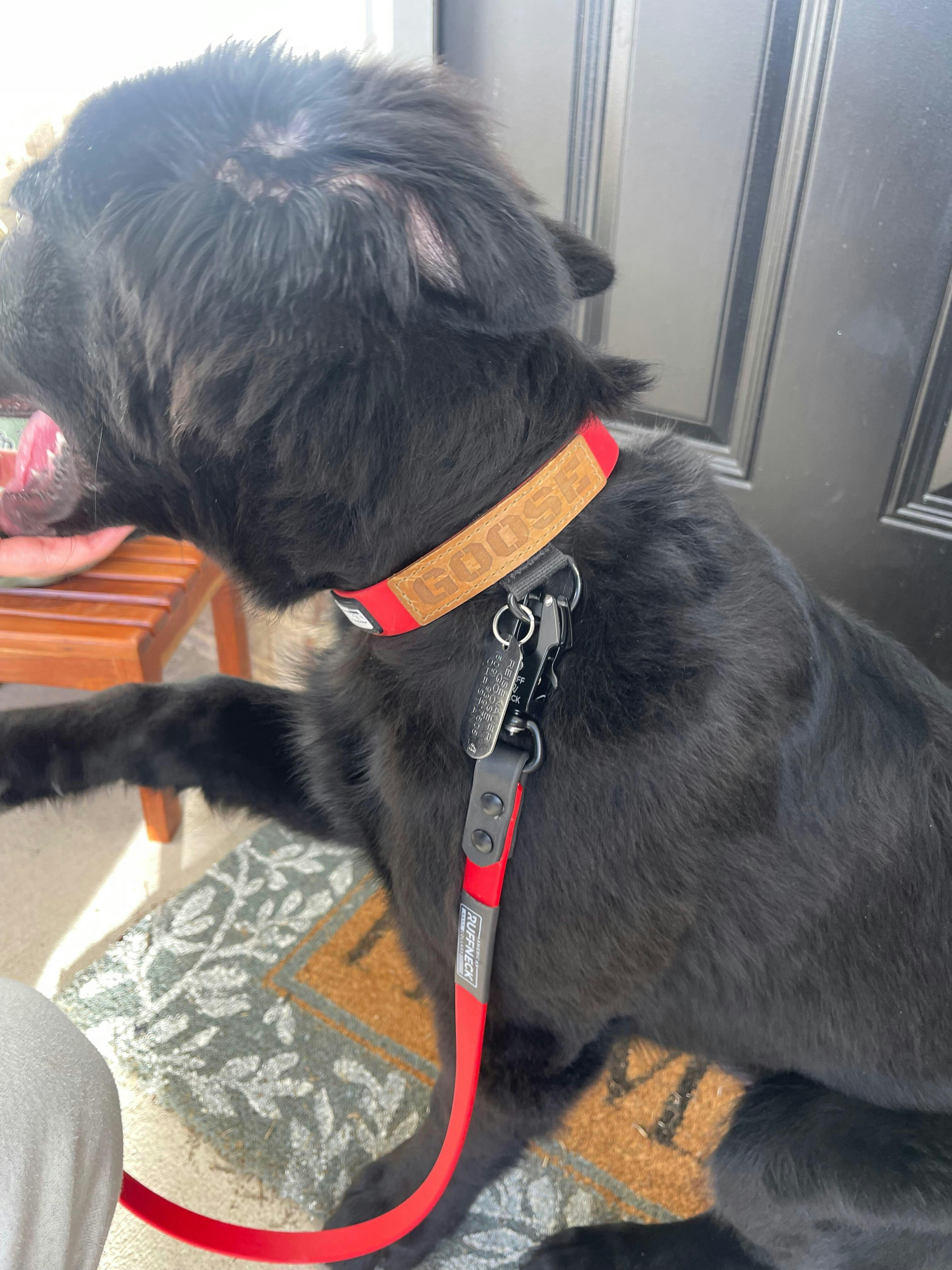 Exclusive Leather Name Tag – A signature touch only from American Ruffneck Collars, giving your dog’s name the respect it deserves. Also available in high-visibility vinyl for a modern look.