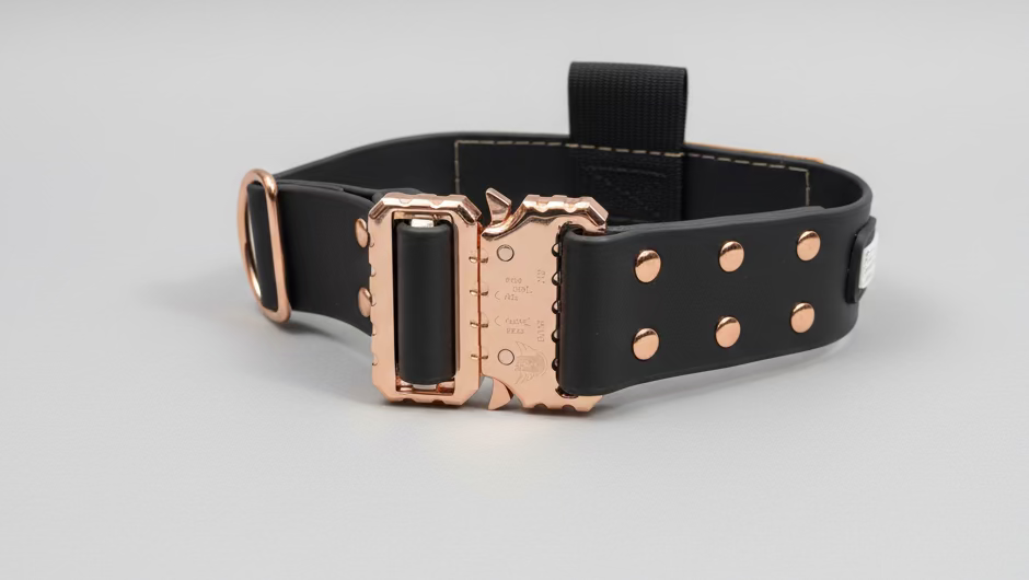 Meet the Atlas Adjustable Collar – Black & Gold Edition, a bold combination of strength and style. Built from premium black BioThane®, it’s waterproof, odor-proof, and made to perform through every adventure.